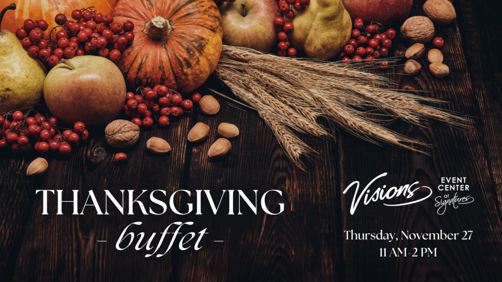 This Thanksgiving, come together with the ones you love and leave the holiday cooking to us at Signatures! Our annual buffet is back, and it’s loaded with all-you-can-eat classics like oven-roasted turkey breast, sliced ham, batter-fried shrimp, buttermilk mashed potatoes, and more. The best memories are made around the table — so reserve yours today!
